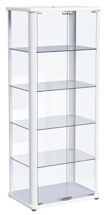 Showcase all your favorite treasures with a modern four-shelf curio cabinet with lighting