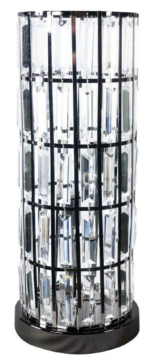 A sleek silhouette brings elegance and regality to a modern three-light table lamp. Adorned with a curtain of sparkling rectangular crystals, it offers glam elegance on a console or side table. Tucked within its column silhouette are three energy-efficient LED lights, creating a rich glow that's perfect for ambiance in your living area or bedroom.Read More